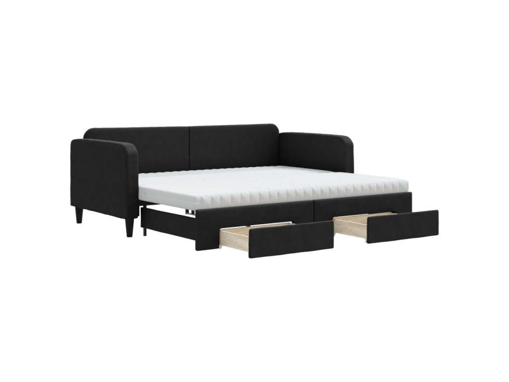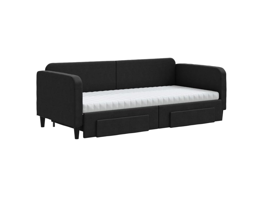 Válenda s přistýlkou a zásuvkami černá 90 x 200 cm textil 3196872
