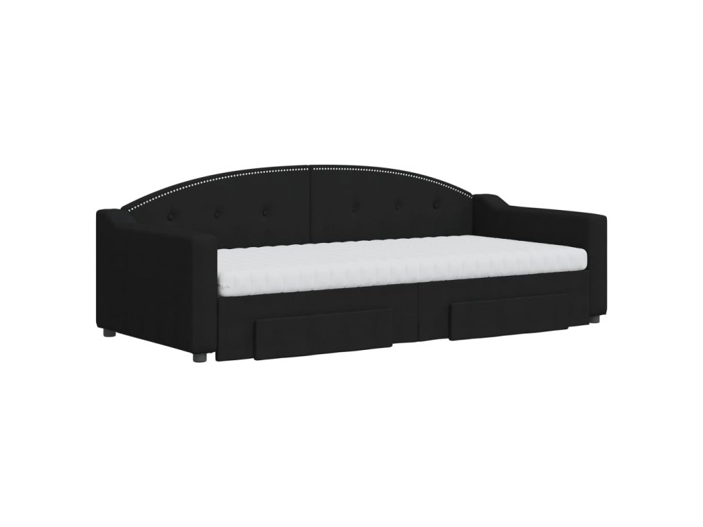 Válenda s přistýlkou a zásuvkami černá 90 x 200 cm textil 3197586