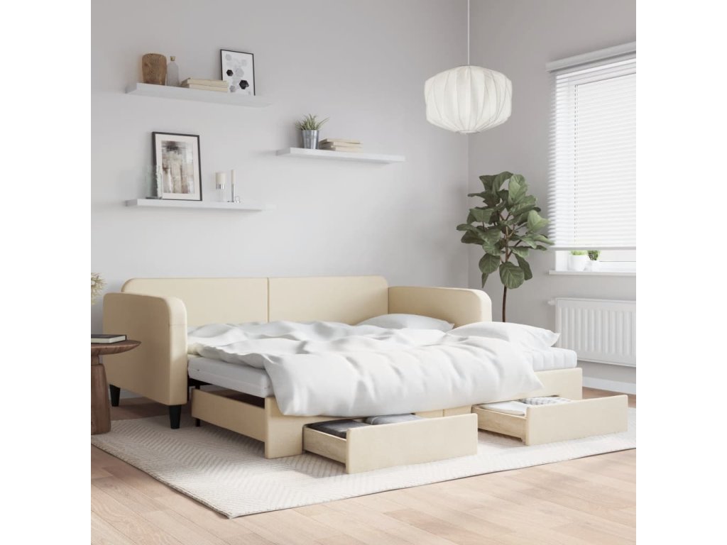 Válenda s přistýlkou a zásuvkami krémová 100 x 200 cm textil 3196879