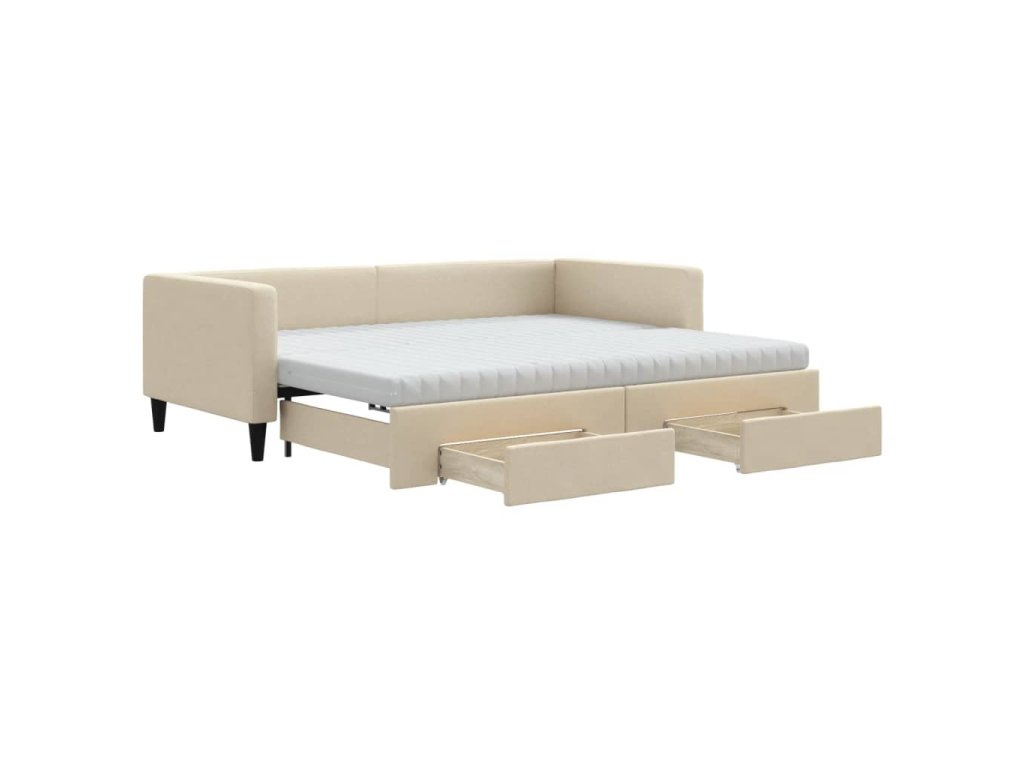 Válenda s přistýlkou a zásuvkami krémová 90 x 200 cm textil 3196636