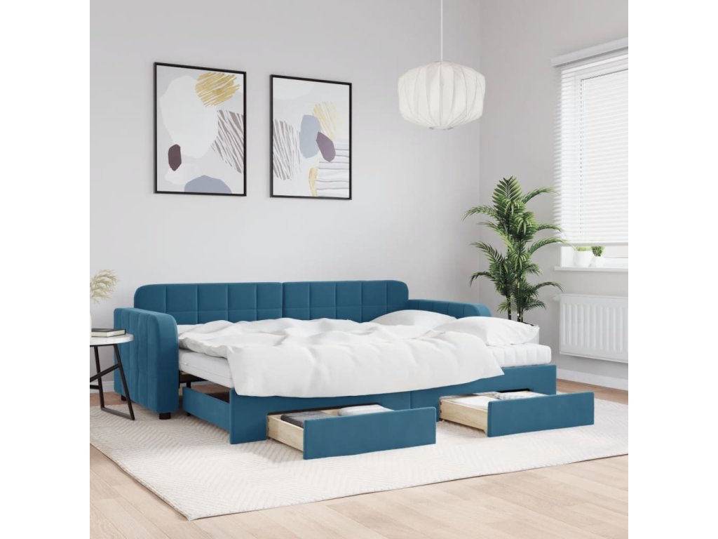 Válenda s přistýlkou a zásuvkami modrá 80 x 200 cm samet 3196993