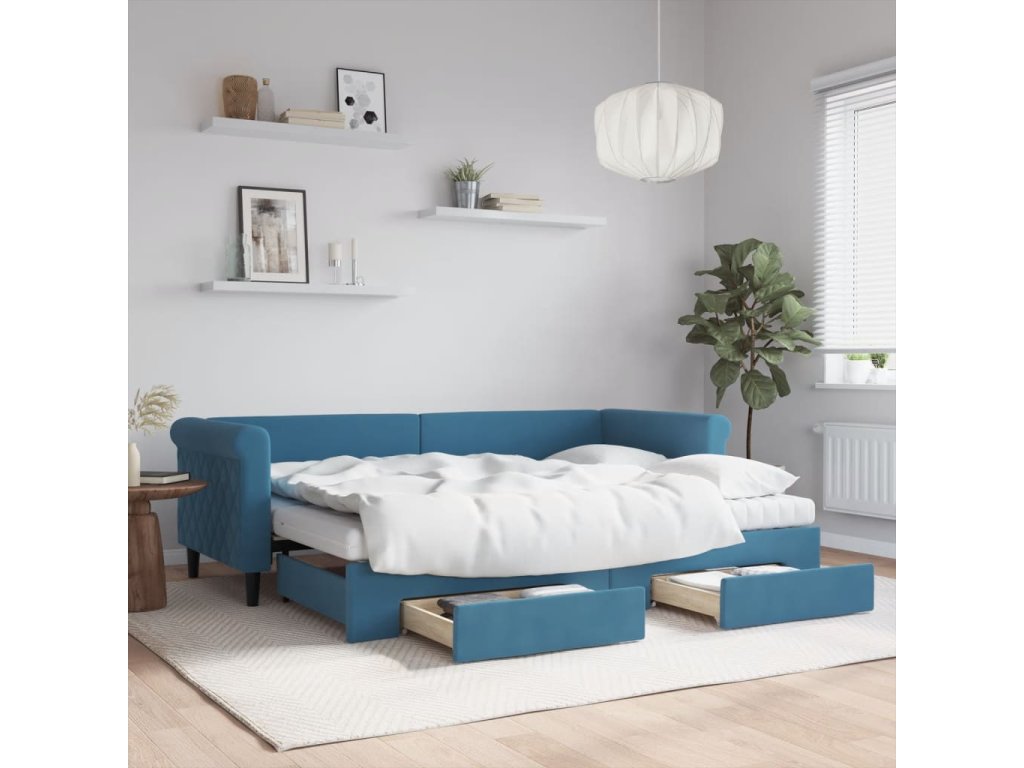 Válenda s přistýlkou a zásuvkami modrá 80 x 200 cm samet 3197835