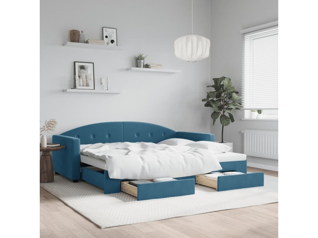 Válenda s přistýlkou a zásuvkami modrá 90 x 200 cm samet 3197348