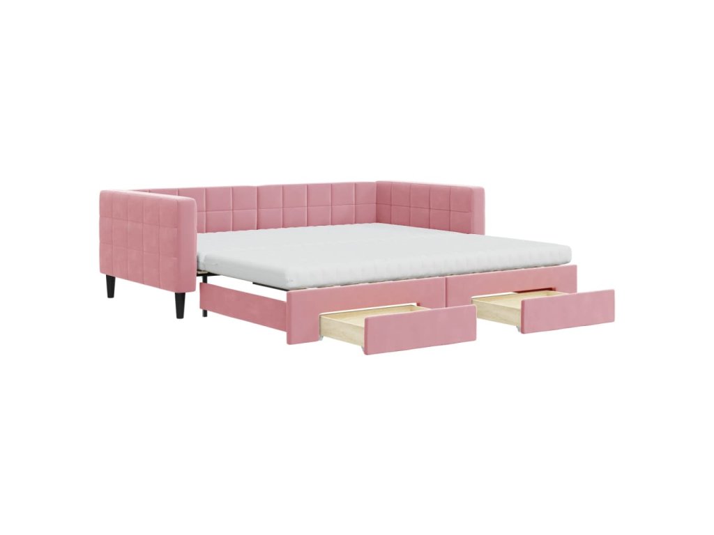Válenda s přistýlkou a zásuvkami růžová 100 x 200 cm samet 3196773