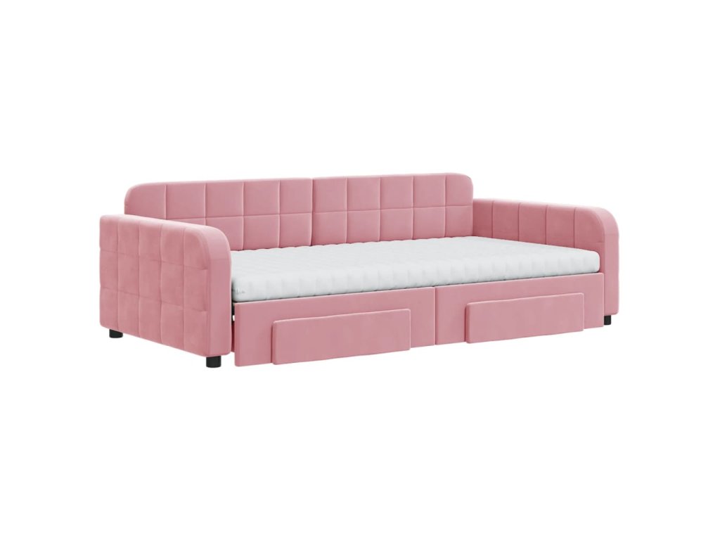 Válenda s přistýlkou a zásuvkami růžová 100 x 200 cm samet 3197011