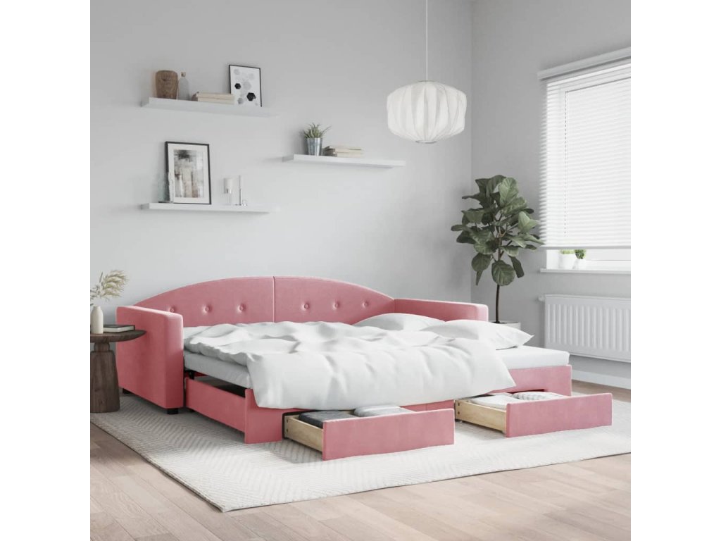 Válenda s přistýlkou a zásuvkami růžová 100 x 200 cm samet 3197359