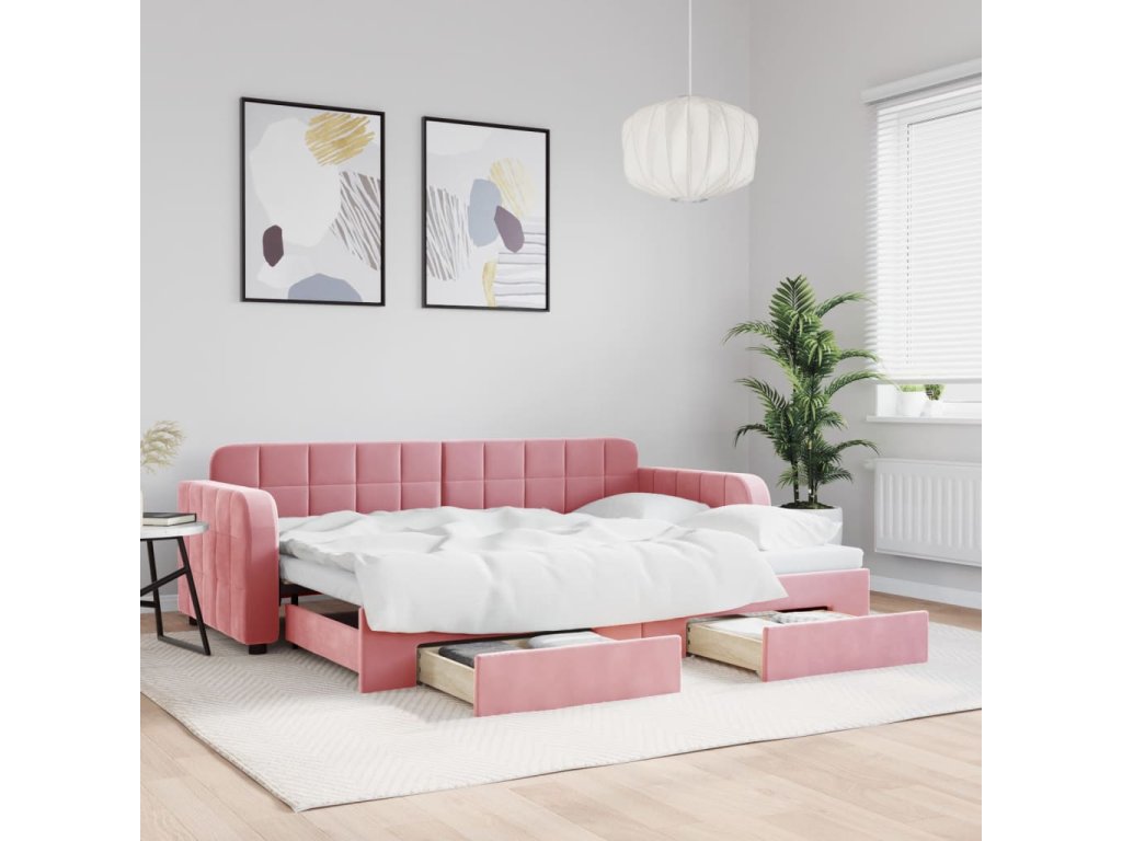 Válenda s přistýlkou a zásuvkami růžová 80 x 200 cm samet 3196973