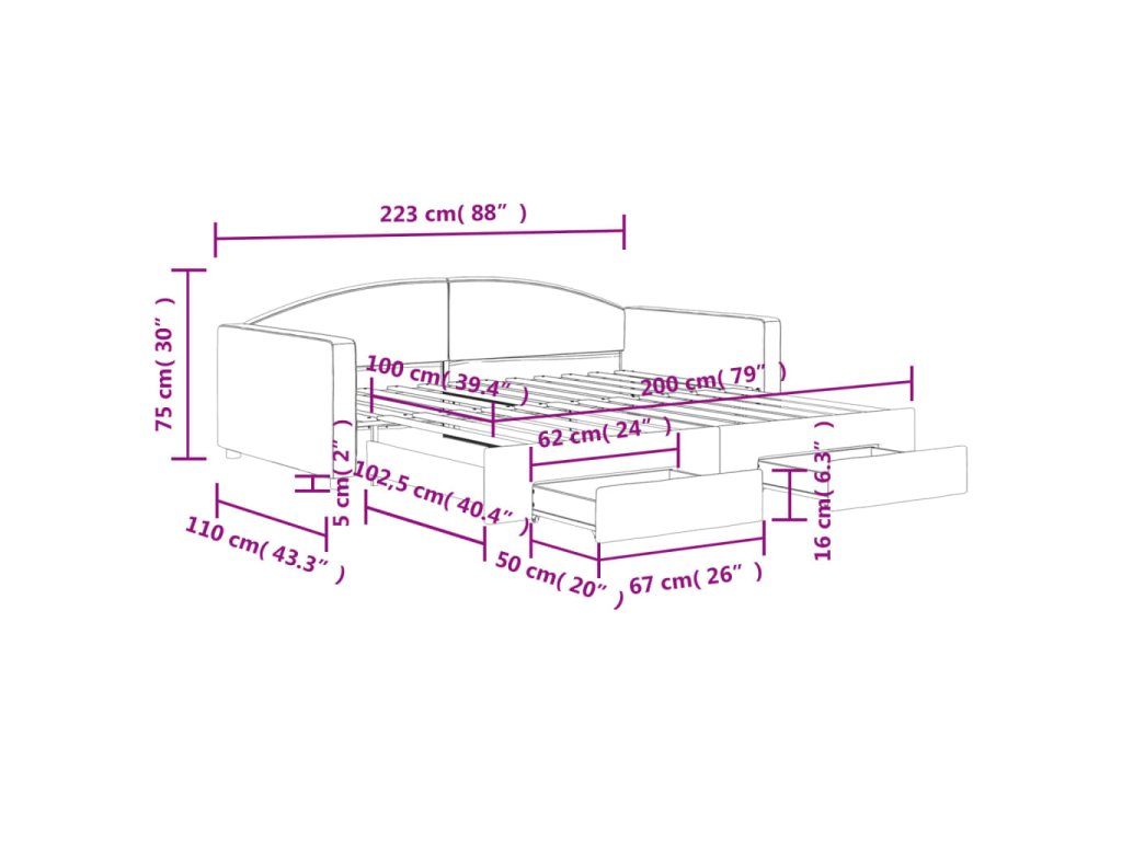 - Rozměry (nevysunuté): 223 x 110 x 75 cm (Š x H x V)