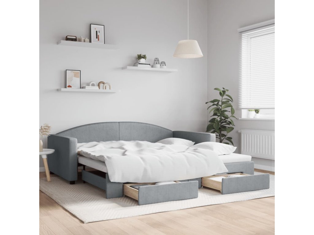 Válenda s přistýlkou a zásuvkami světle šedá 100x200 cm textil 3197229