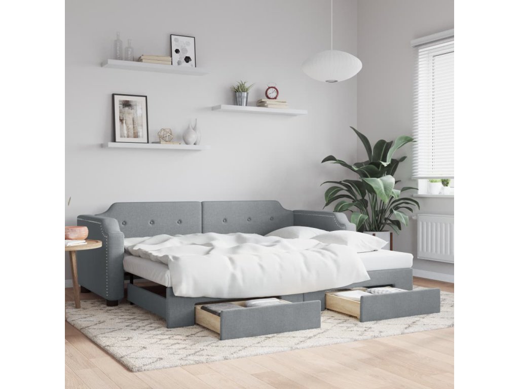 Válenda s přistýlkou a zásuvkami světle šedá 100x200 cm textil 3197675