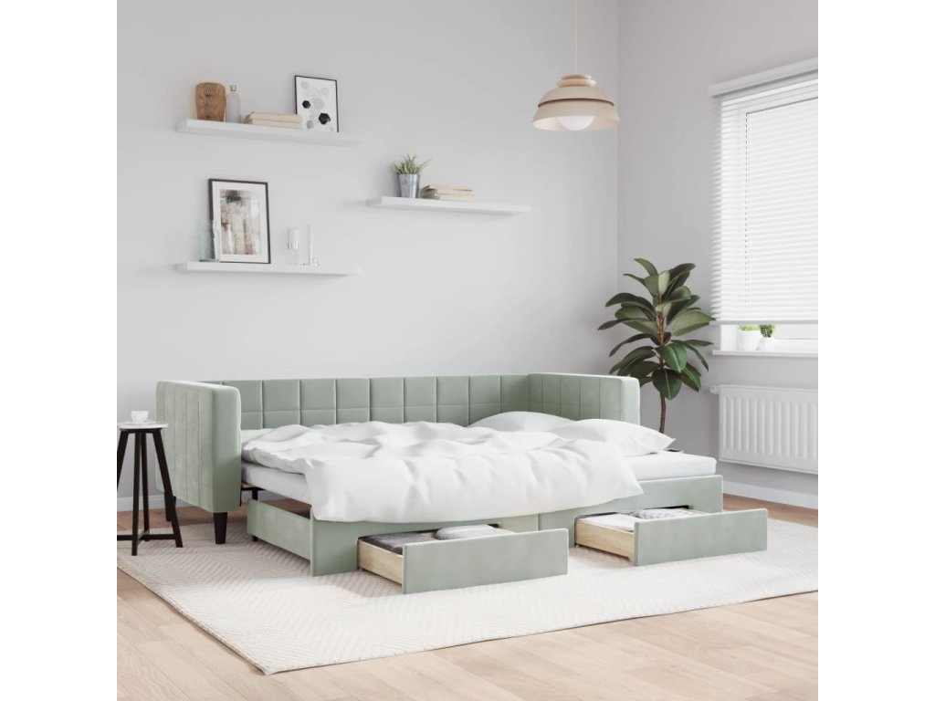 Válenda s přistýlkou a zásuvkami světle šedá 80 x 200 cm samet 3196732