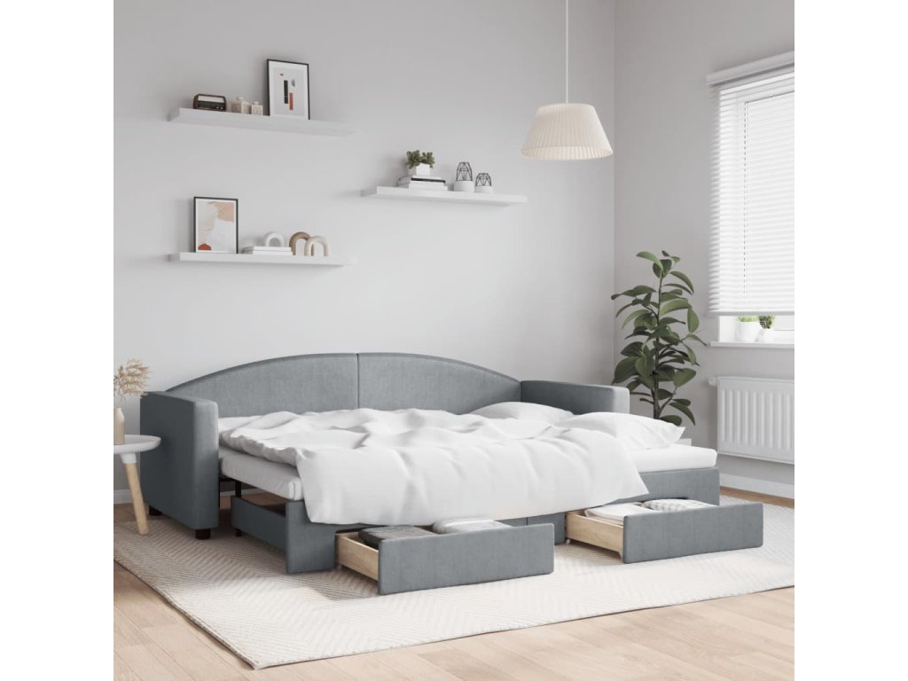 Válenda s přistýlkou a zásuvkami světle šedá 80 x 200 cm textil 3197219