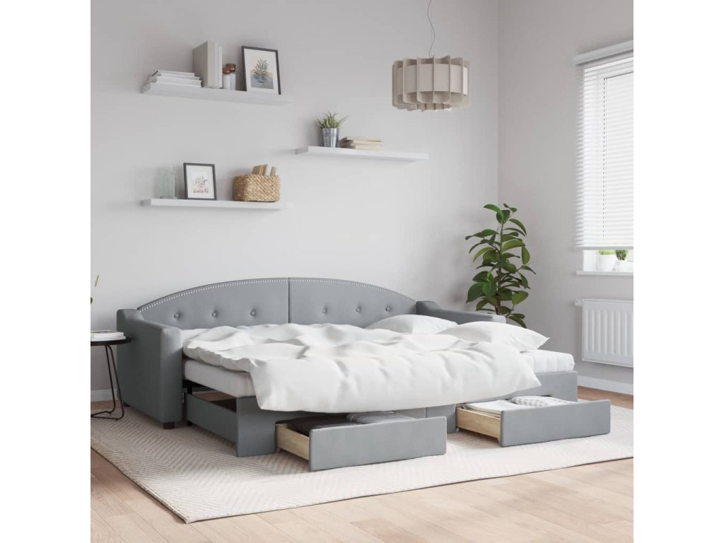 Válenda s přistýlkou a zásuvkami světle šedá 80 x 200 cm textil 3197561