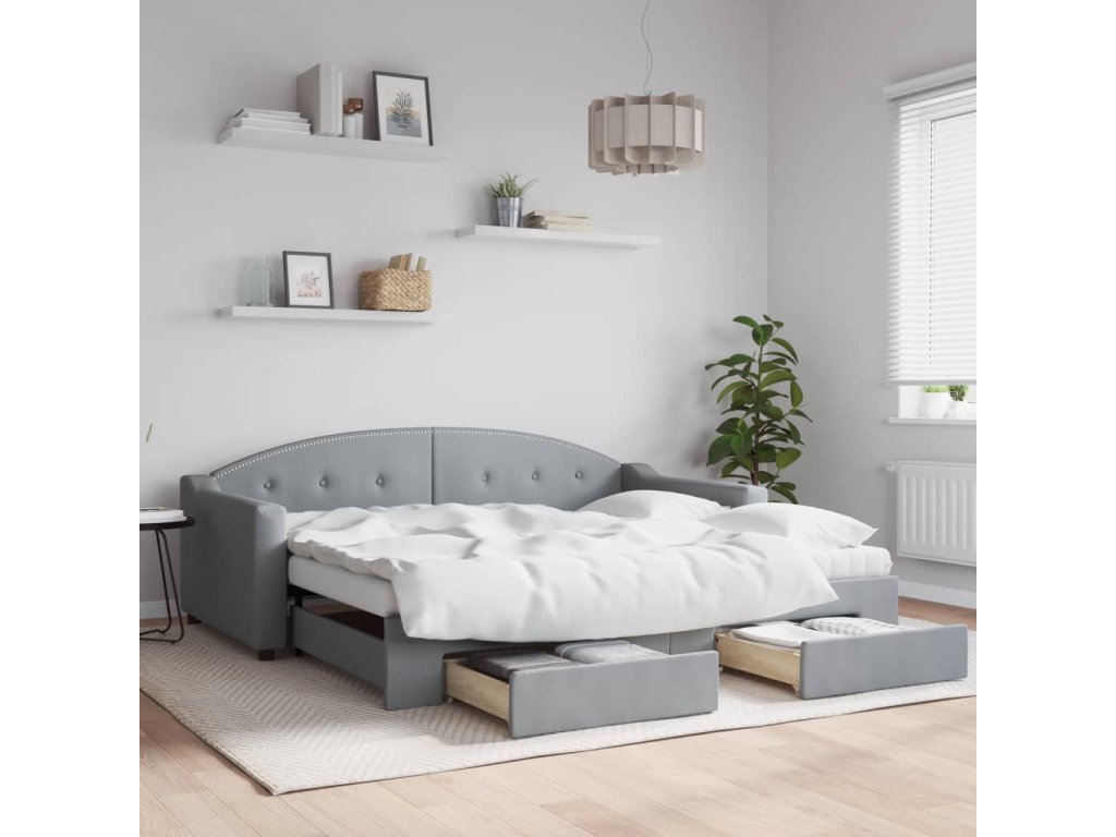 Válenda s přistýlkou a zásuvkami světle šedá 90 x 190 cm textil 3197594