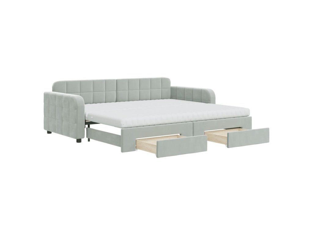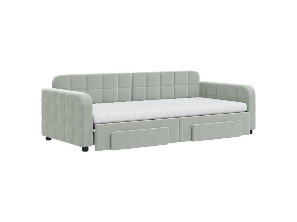 Válenda s přistýlkou a zásuvkami světle šedá 90 x 200 cm samet 3197001