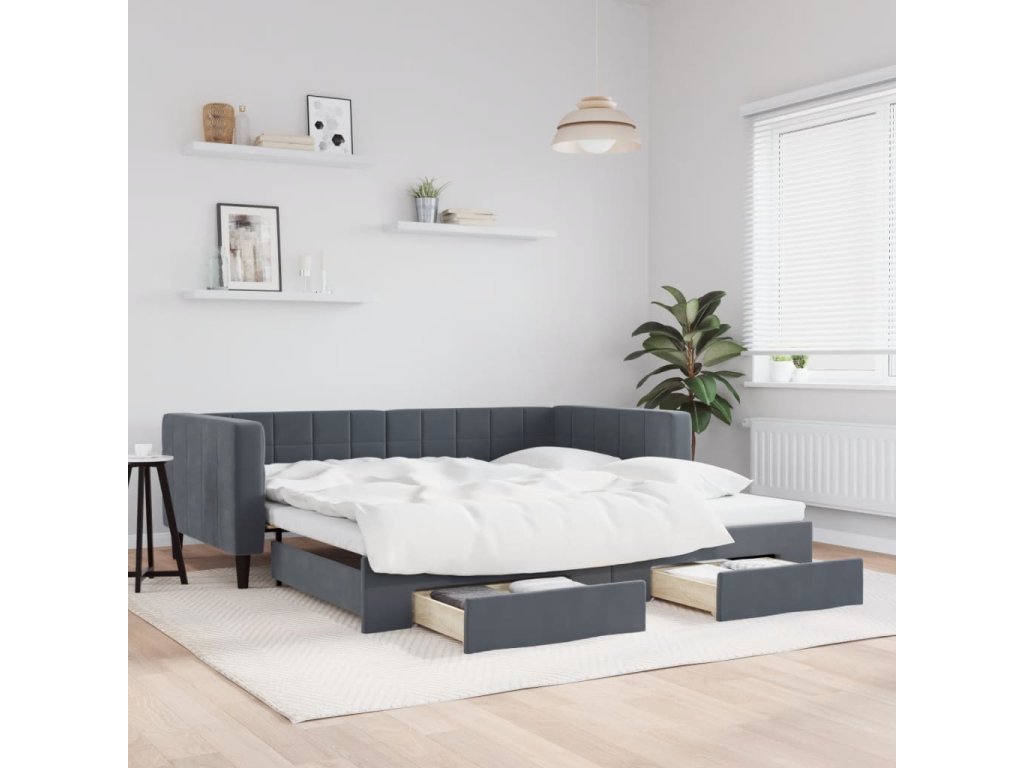 Válenda s přistýlkou a zásuvkami tmavě šedá 100 x 200 cm samet 3196747