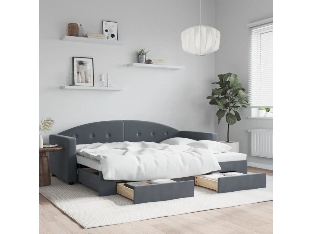 Válenda s přistýlkou a zásuvkami tmavě šedá 80 x 200 cm samet 3197343