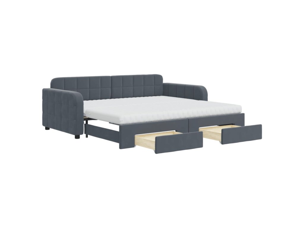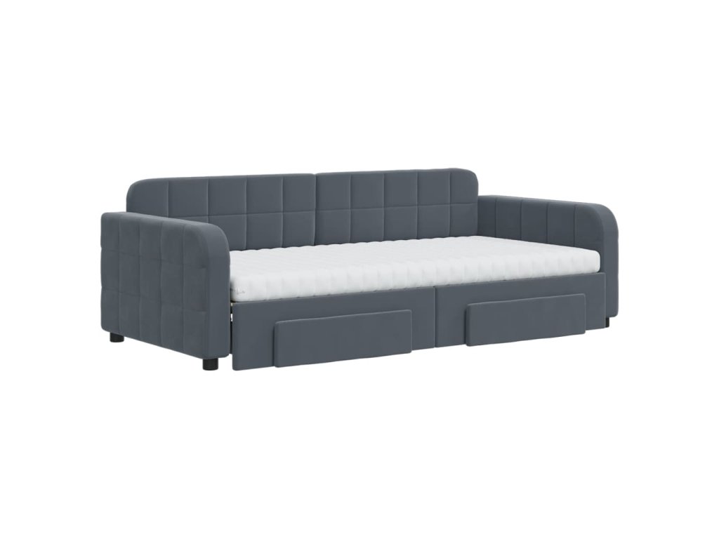Válenda s přistýlkou a zásuvkami tmavě šedá 90 x 190 cm samet 3197015