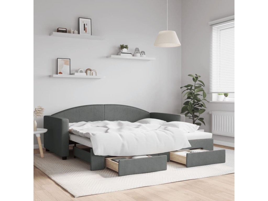 Válenda s přistýlkou a zásuvkami tmavě šedá 90 x 190 cm textil 3197235