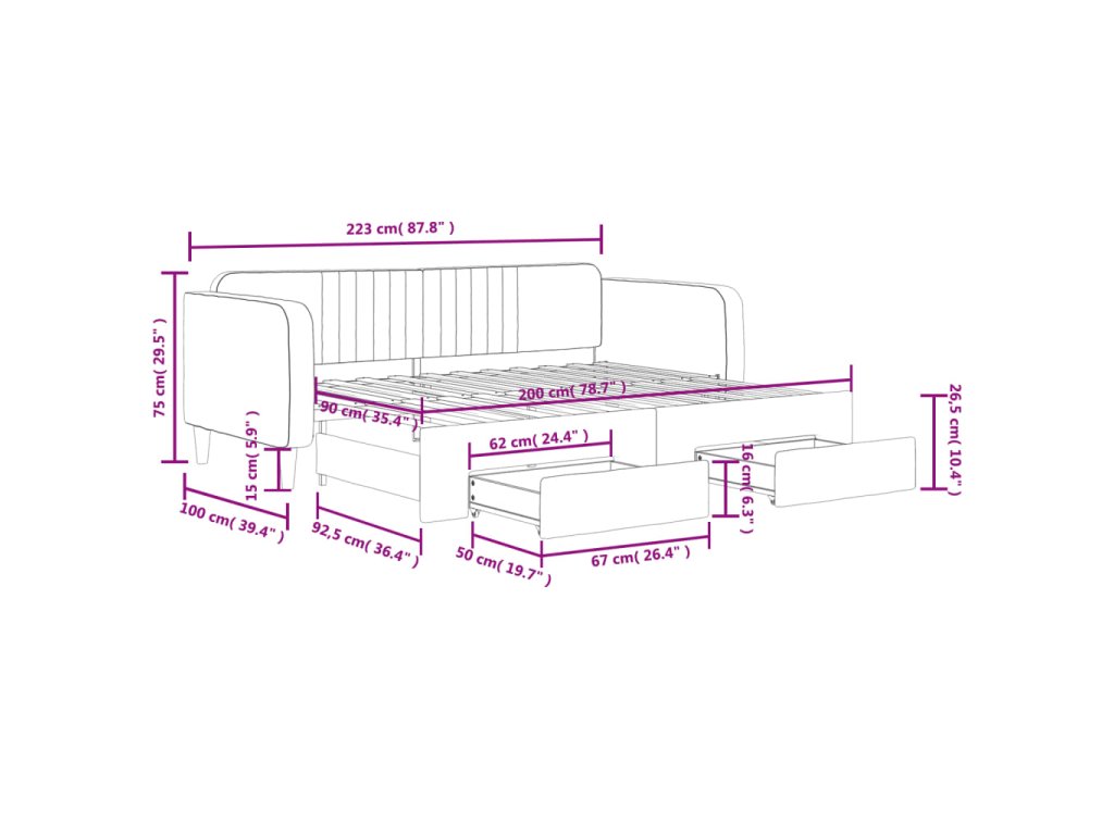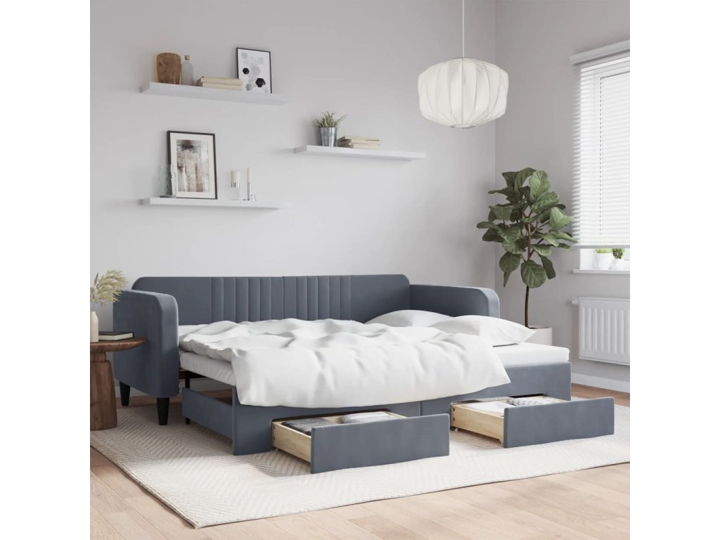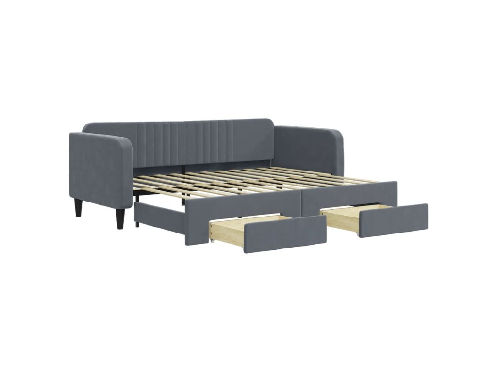 Válenda s přistýlkou a zásuvkami tmavě šedá 90 x 200 cm samet 3197112