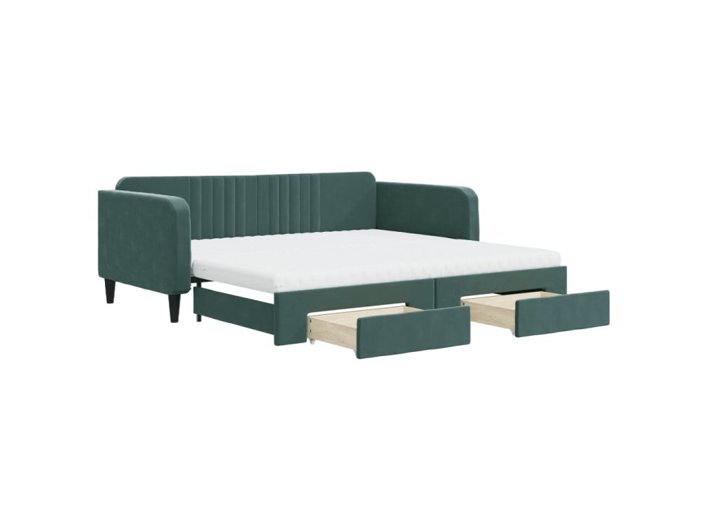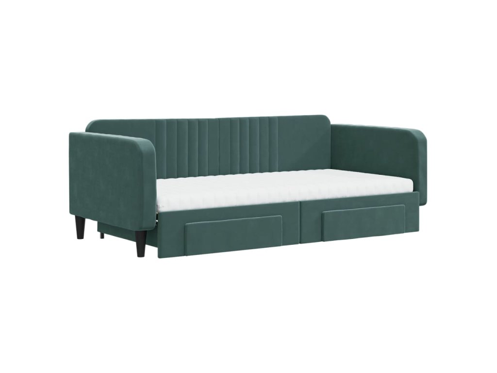 Válenda s přistýlkou a zásuvkami tmavě zelená 100x200 cm samet 3197144
