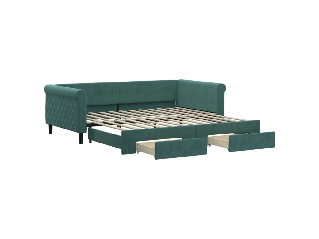 Válenda s přistýlkou a zásuvkami tmavě zelená 100x200 cm samet 3197828