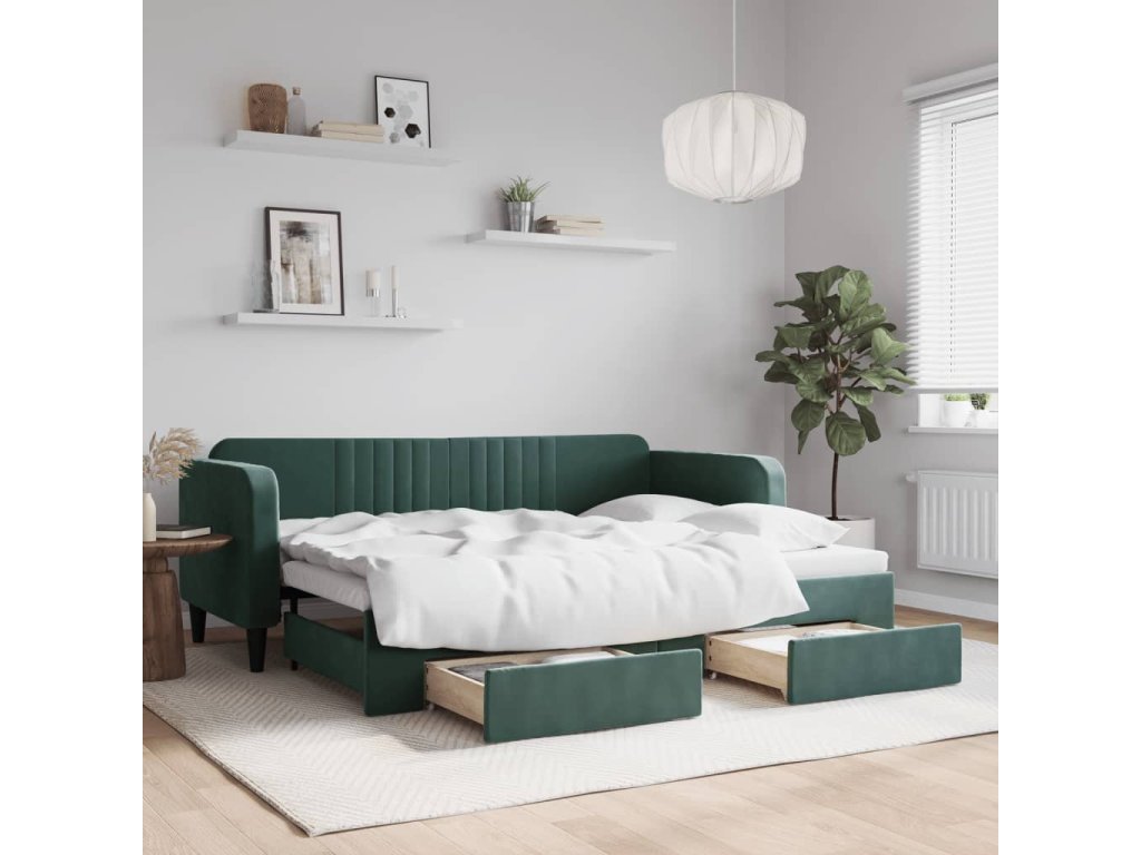 Válenda s přistýlkou a zásuvkami tmavě zelená 80 x 200 cm samet 3197106