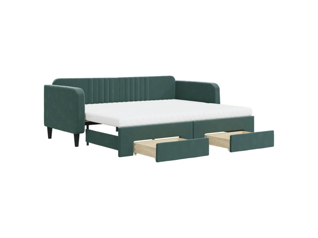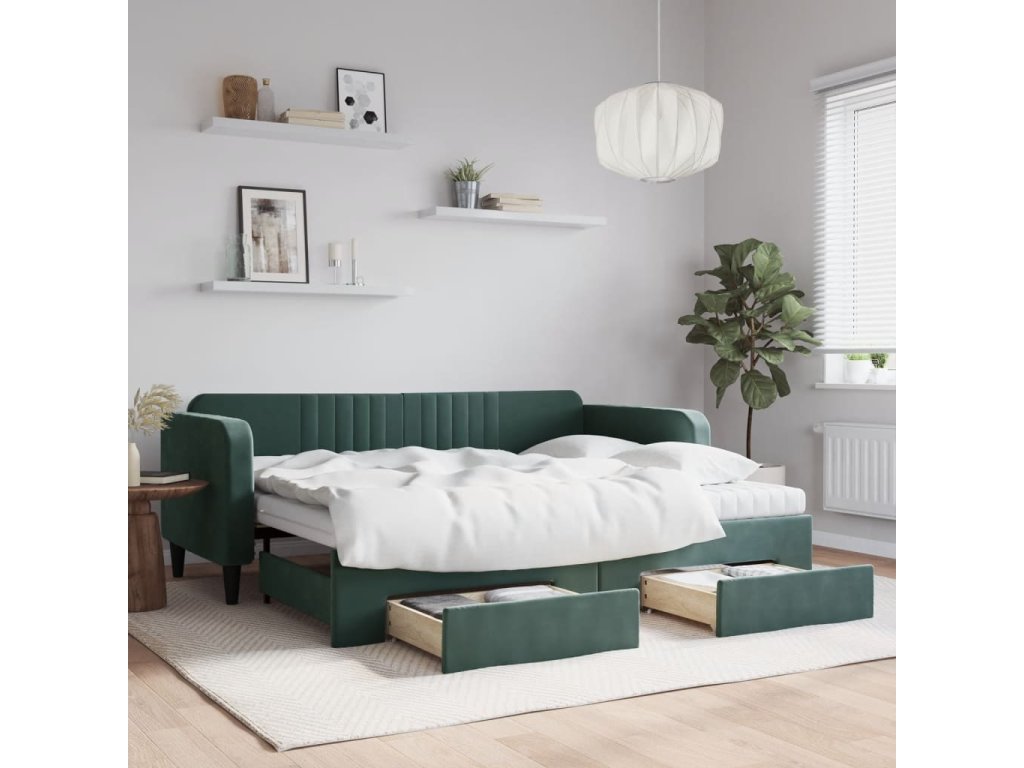 Válenda s přistýlkou a zásuvkami tmavě zelená 90 x 200 cm samet 3197137