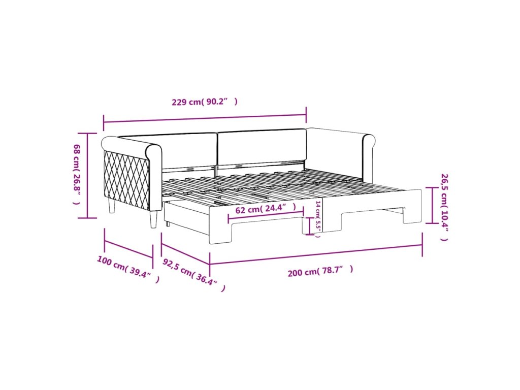- Rozměry (nevysunuté): 229 x 100 x 68 cm (D x Š x V)