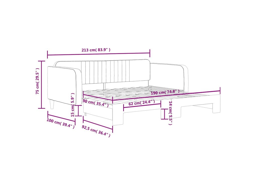 - Rozměry (nevysunuté): 213 x 100 x 75 cm (D x Š x V)