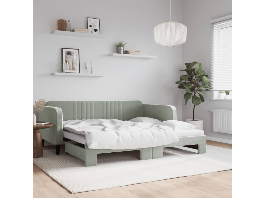 Válenda s přistýlkou světle šedá 90 x 190 cm samet 3197076