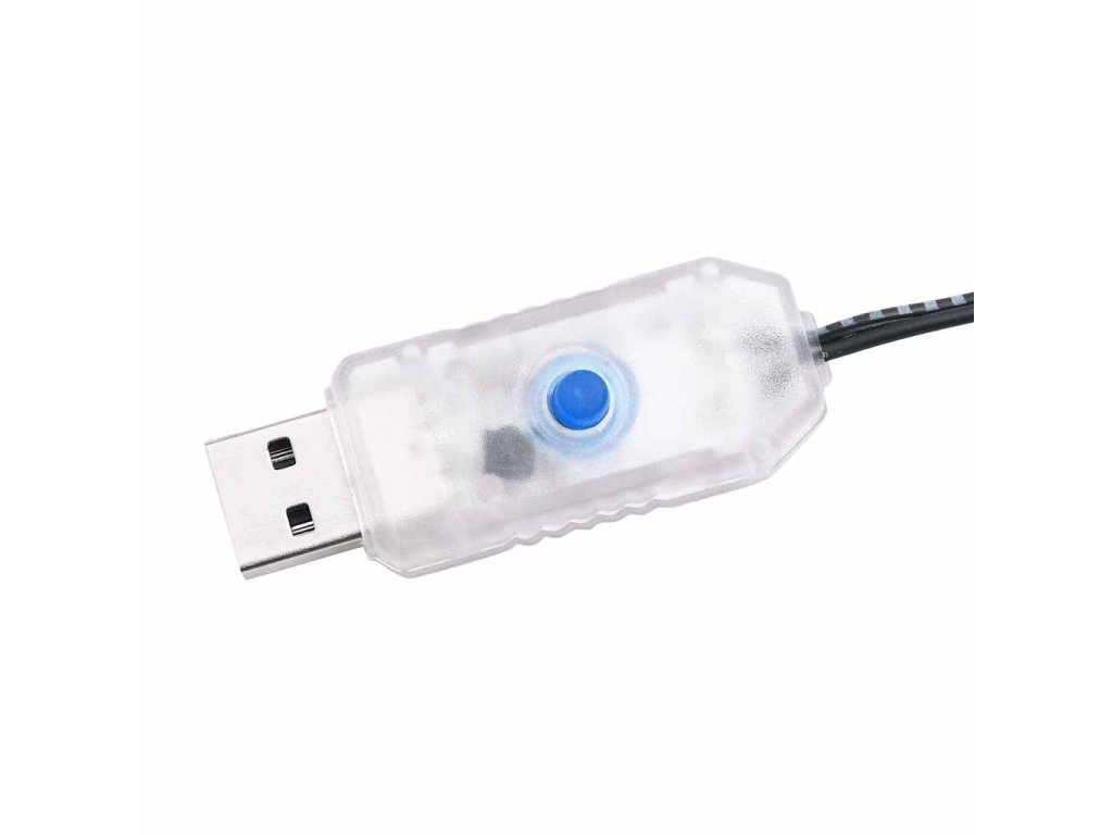 Poznámka: Dodaný USB konektor není voděodolný a je třeba ho chránit před vodou a vlhkostí. Přesto můžete používat stomek venku, protože 5 m dlouhý prodlužovací kabel a samotný produkt jsou voděodolné. Produkt je vybaven USB konektorem, ale certifikovaný napájecí zdroj 5V USB není součástí dodávky.