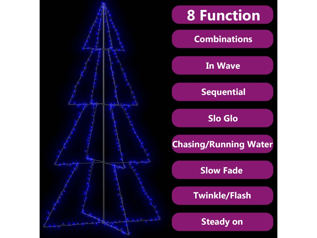 Světýlka obsahují 360 vysoce výkonných LED diod, které jsou velmi energeticky úsporné a vydávají jasné světlo. Diody mají 8 různých světelných režimů: kombinace všech, pomalá záře, blikání/mihotání, svícení ve vlnách, efekt tekoucí vody, sekvenční svícení, stálé svícení a pomalé blednutí. Světla se krásně rozzáří a vytvoří kouzelnou sváteční atmosféru. Bude to opravdová potěcha por oči, obzvláště večer, a také slouží jako útulný zdroj světla v místnosti. Volně stojící kužel lze snadno a bezpečně připevnit k zemi za pomoci přiloženého montážního materiálu.