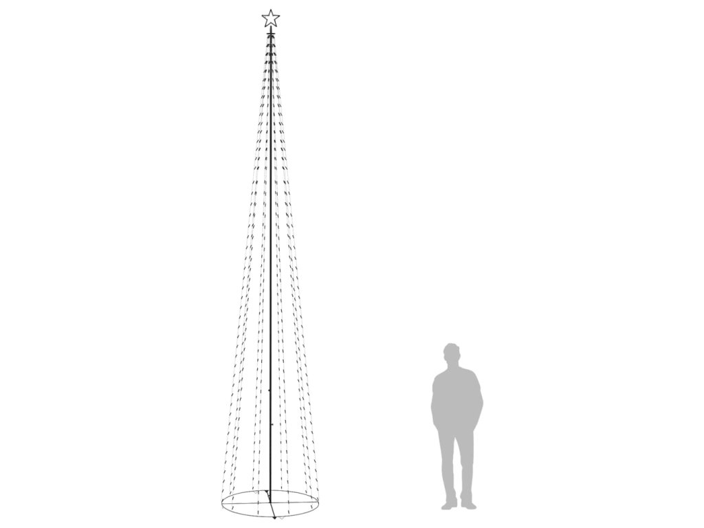 Tato překrásná vánoční dekorace je voděodolná, takže je vhodná pro vnitřní i zastřešené venkovní použití. Světýlka se skládají ze 752 LED diod, kterým na vrcholu kraluje světlo ve tvaru hvězdy vyzařující modré světlo. Přiložená kulatá základna se dá složit na polovinu. Tento volně stojící vánoční kužel představuje působivé a zároveň příjemné dekorativní osvětlení, jež s sebou přináší také útulnou atmosféru. Strom lze snadno a bezpečně připevnit k zemi za pomoci přiloženého montážního materiálu.