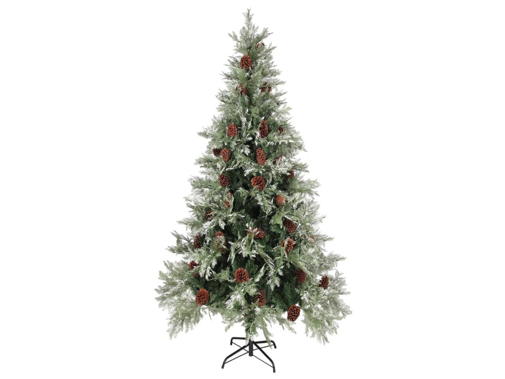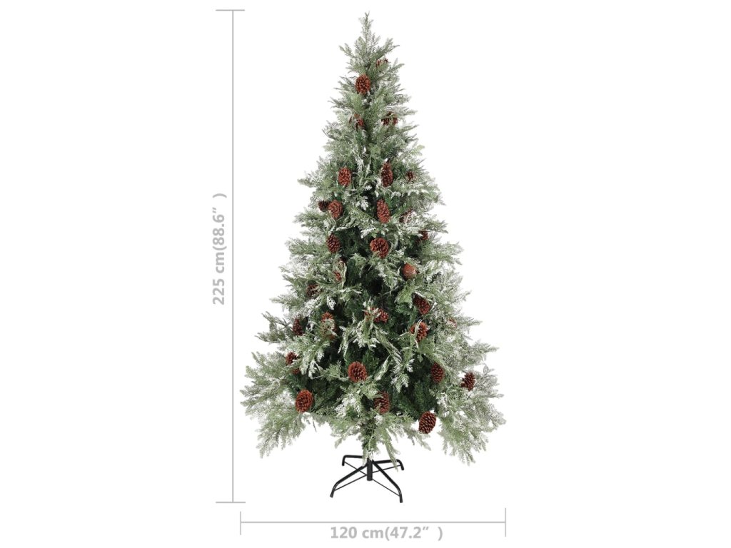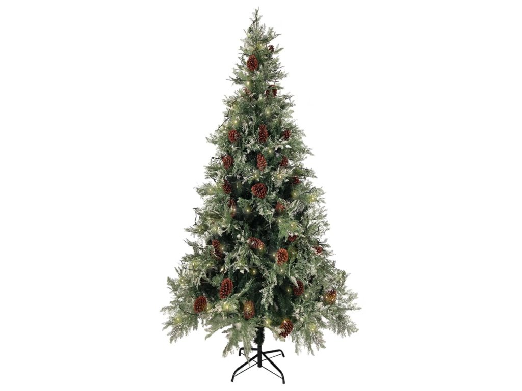 Tento krásný vánoční stromek má větve vyrobené z PVC a PE. Větve stromku jsou připevněny ke středovému sloupku pomocí systému pantů. Tím se větve automaticky posunou do správné polohy. Šišky a jehličí pokryté bílým sněhovým popraškem navíc dodává tomuto vánočnímu stromku na eleganci. Je vybaven energeticky úspornými LED světly, krásně svítí a vytváří útulnou vánoční atmosféru. Přiložený ocelový stojan poskytuje stromku optimální stabilitu.