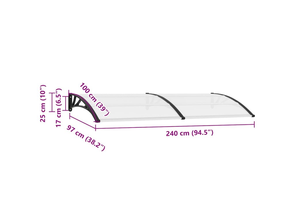 Vchodová stříška 240 x 100 cm polykarbonát 141760