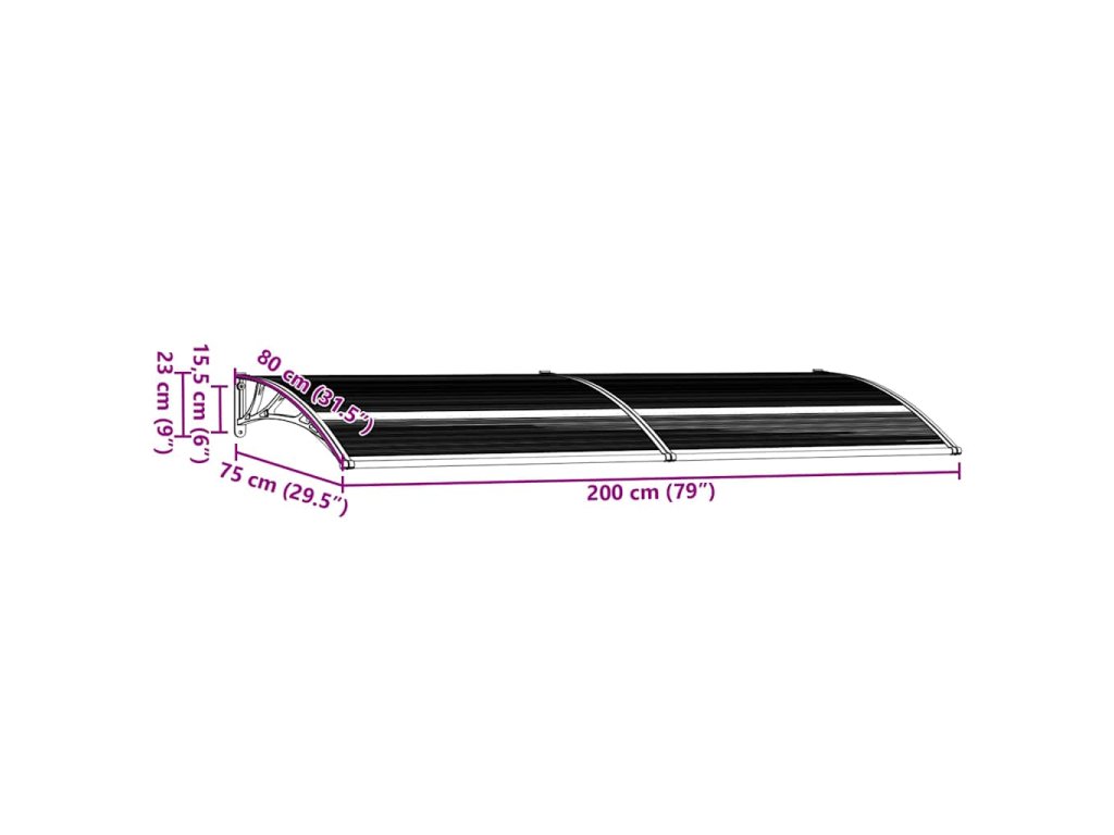 Vchodová stříška černá 200 x 75 cm polykarbonát 144825