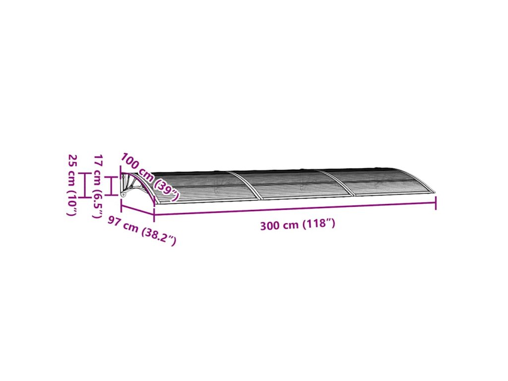 Vchodová stříška černá 300 x 100 cm polykarbonát 153569