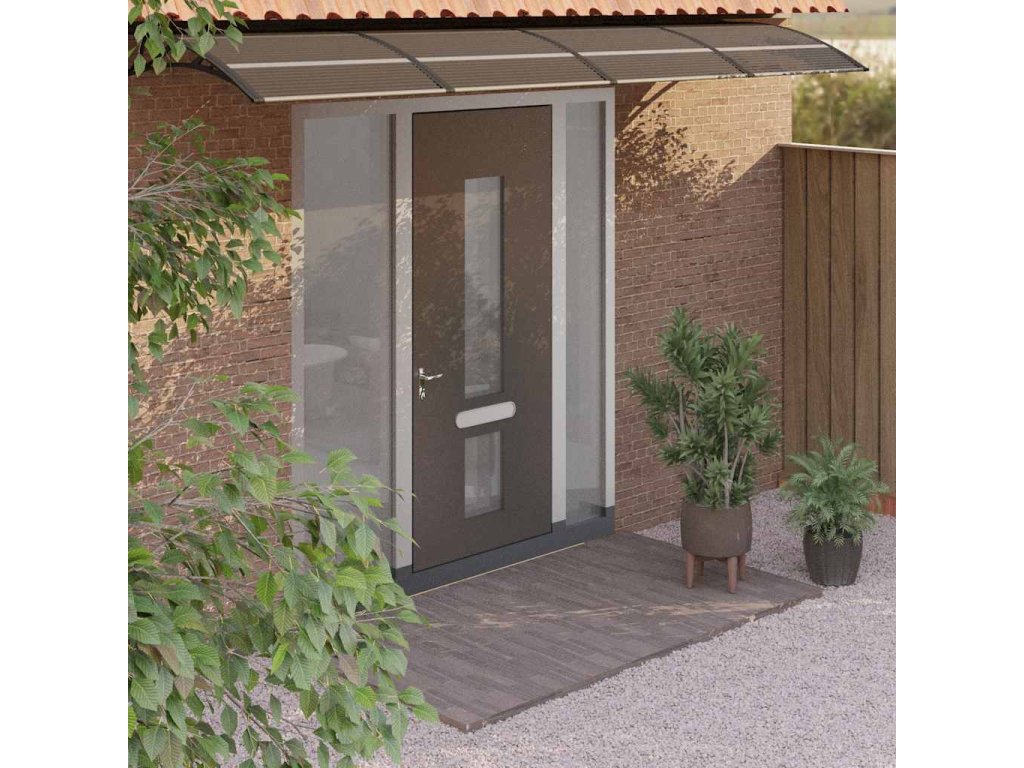 - Snadná instalace: Veškeré potřebné montážní příslušenství stříšky nad dveře je součástí dodávky.