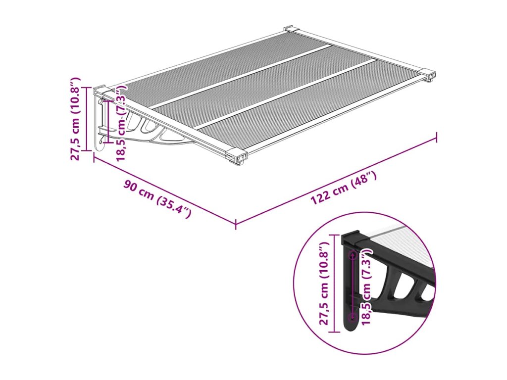 Vchodová stříška černá a průhledná 122 x 90 cm polykarbonát 153683