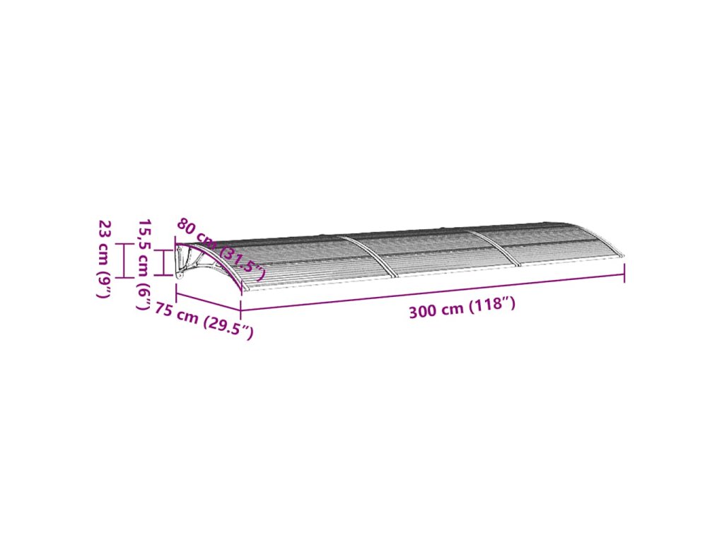 Vchodová stříška šedá 300 x 75 cm polykarbonát 153581