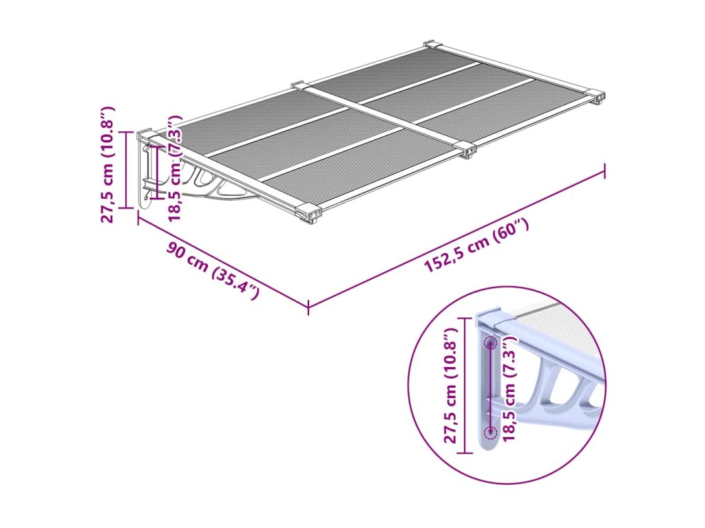 Vchodová stříška šedá a průhledná 152,5 x 90 cm polykarbonát 153691