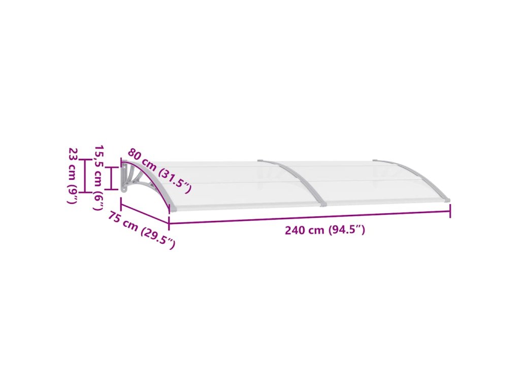 Vchodová stříška šedá a průhledná 240 x 75 cm polykarbonát 144821
