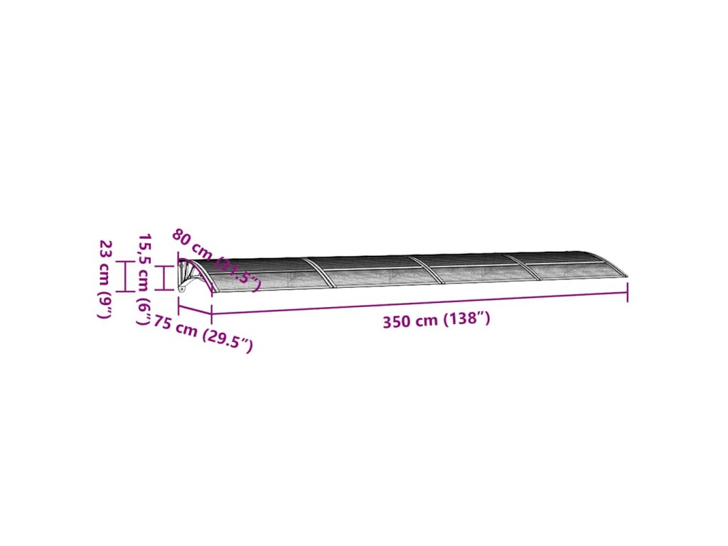 Vchodová stříška šedá a průhledná 350 x 75 cm polykarbonát 153592