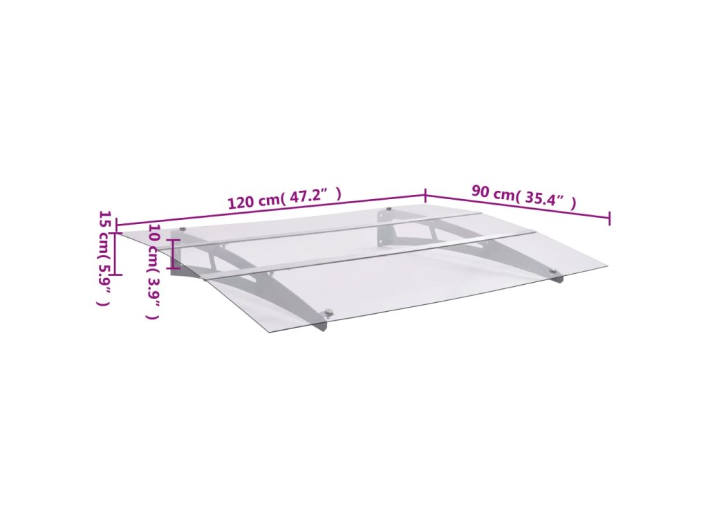 Vchodová stříška stříbrná a průhledná 120 x 90 cm polykarbonát 144828