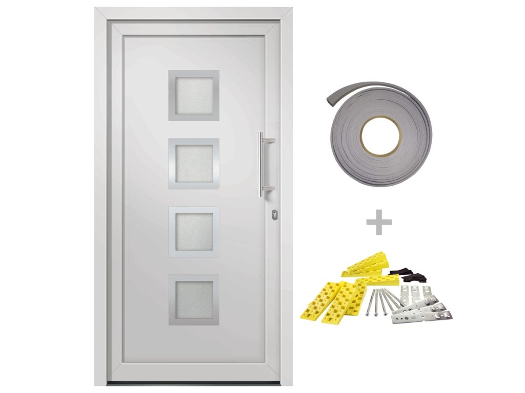 - Balení obsahuje dveře, sadu klik, profilovou cylindrickou vložku, 3 klíče, těsnící pásku a montážní příslušenství