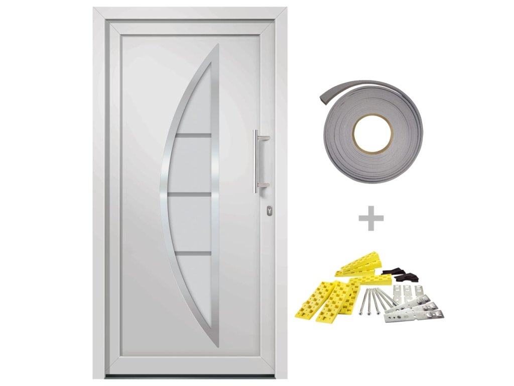 - Balení obsahuje dveře, sadu klik, profilovou cylindrickou vložku, 3 klíče, těsnící pásku a montážní příslušenství