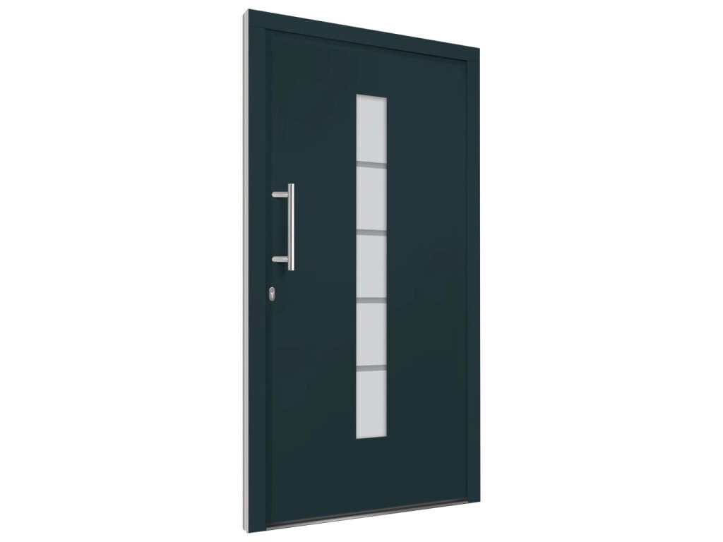 Vchodové dveře mají robustní rám i výplň, hliníkový práh, nastavitelné panty, bezpečnostní zámek s jazýčkem a háčkem a 5 stavítky, izolační zasklení a výztuhou z pozinkované oceli. Samotné dveře jsou vyrobené z hliníku a PVC a vyznačují se svou působivou bytelností a vysoce praktickým zamykáním. Obdržíte je spolu s kompletní sadou, která obsahuje nerezovou úchytku, vnitřní kliku, klíče, těsnící pásku a montážní příslušenství.