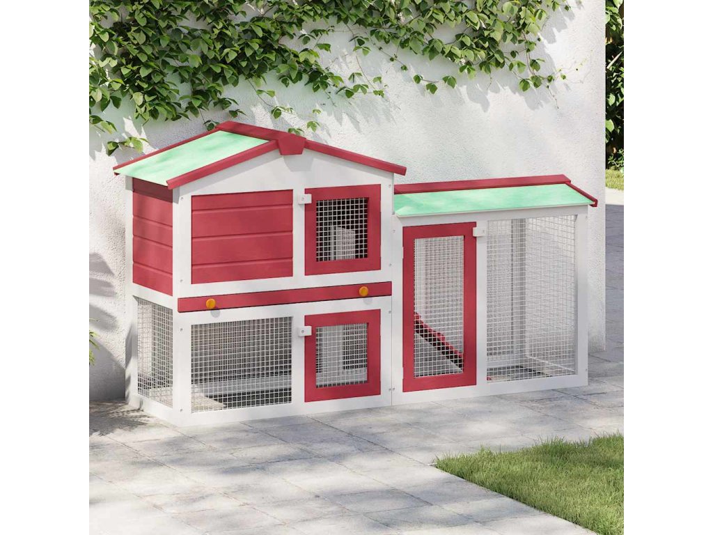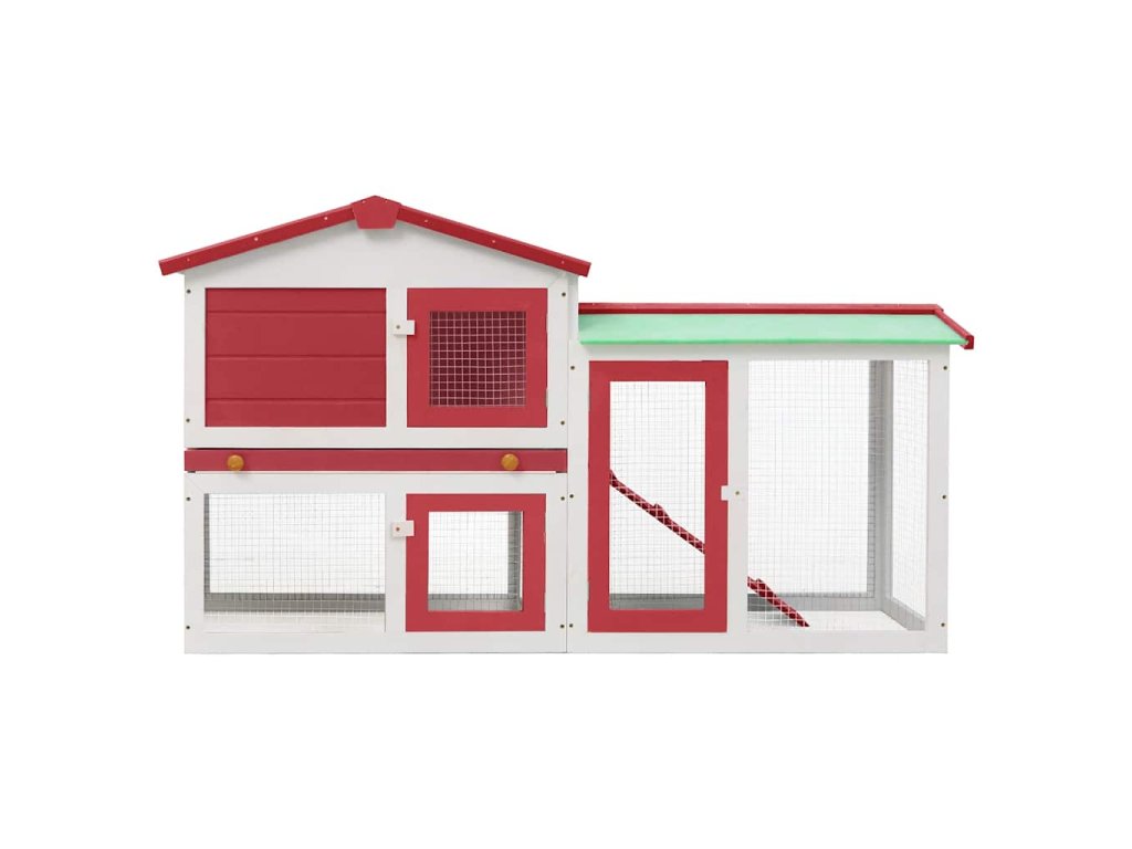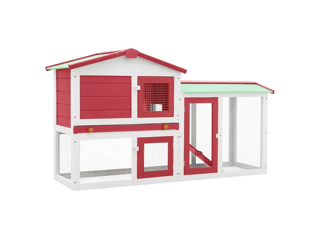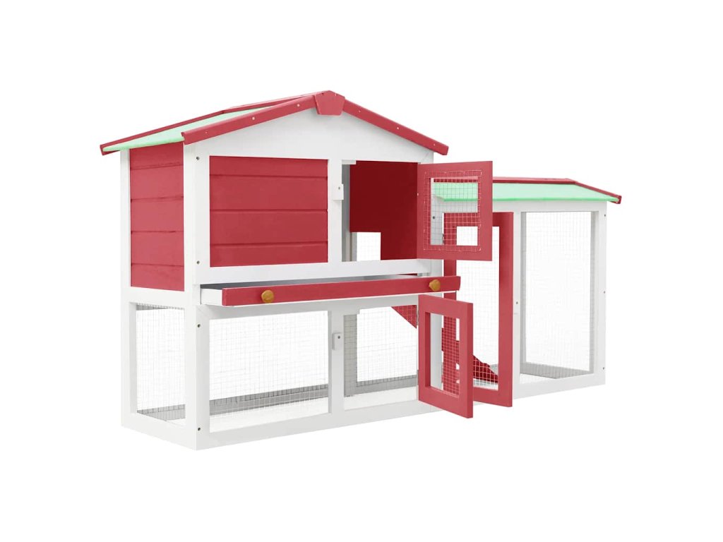 Velká venkovní králíkárna červeno-bílá 145 x 45 x 84 cm dřevo 170842