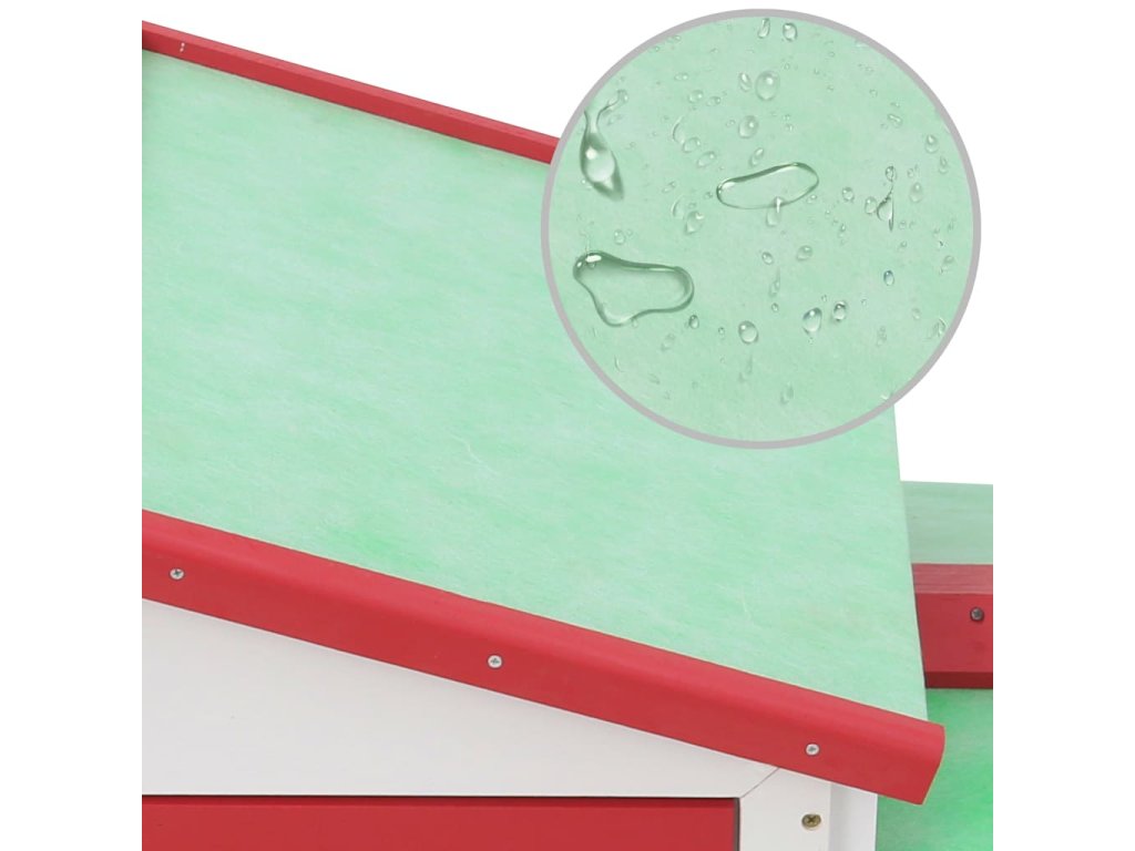 Je postavená z masivního jedlového dřeva s nátěrem, který je pro zvířata bezpečný a dřevu zaručuje dlouhou životnost. Asfaltová střecha chrání vaše chlupaté přátele před nepřízní počasí. Zvýšené okraje udrží vaše malá zvířata v bezpečí, suchu a teple, zejména za deštivých dnů. Do pelíšku se váš mazlíček snadno vyšplhá po přiložené rampě. Kotec je navržený pro nenáročnou údržbu a má odnímatelné dno pro jednodušší čištění. Výběh s odolným oplocením zajišťuje dostatečnou ventilaci a brání domácím mazlíčkům ve výletech ven, zatímco dravce naopak nepustí dovnitř. Uzamykatelná dvířka chrání vaše mazlíčky a umožňují bezproblémový přístup.